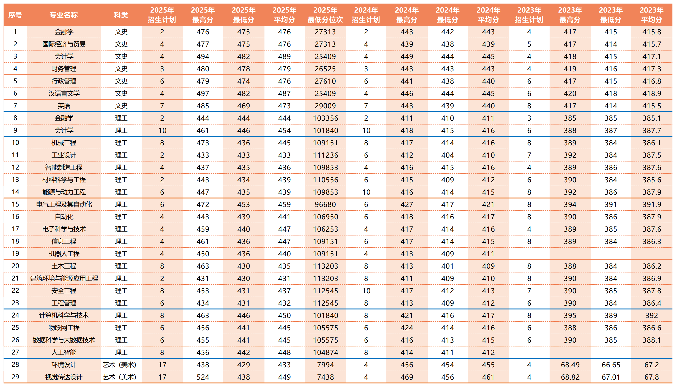 近年分专业录取数据统计表