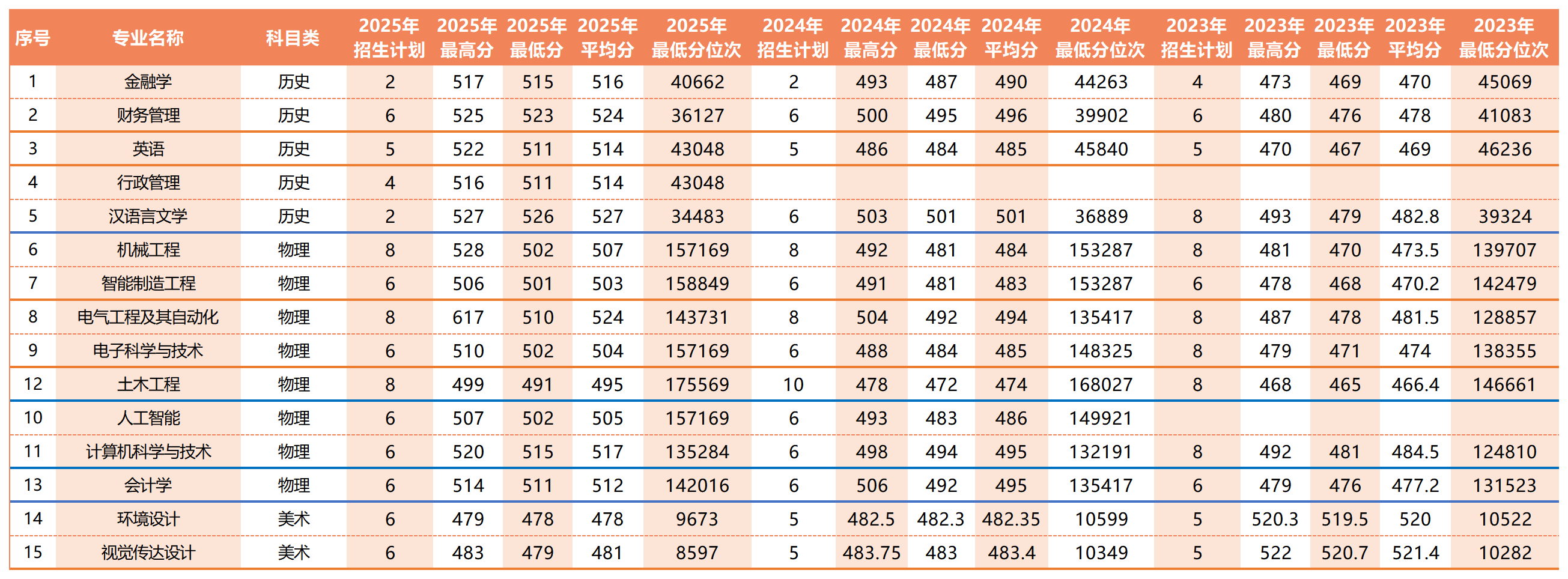 近年分专业录取数据统计表