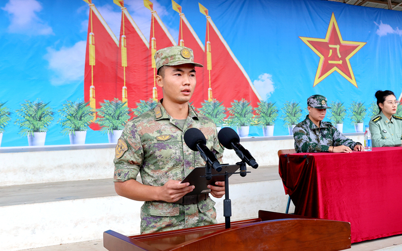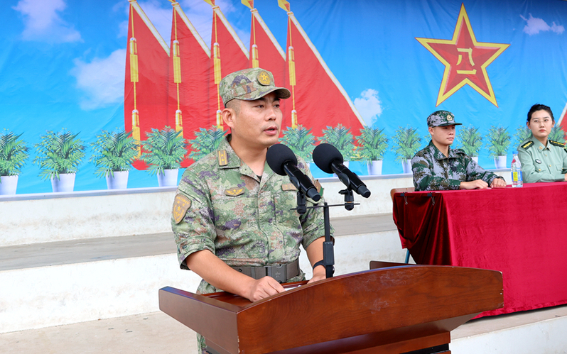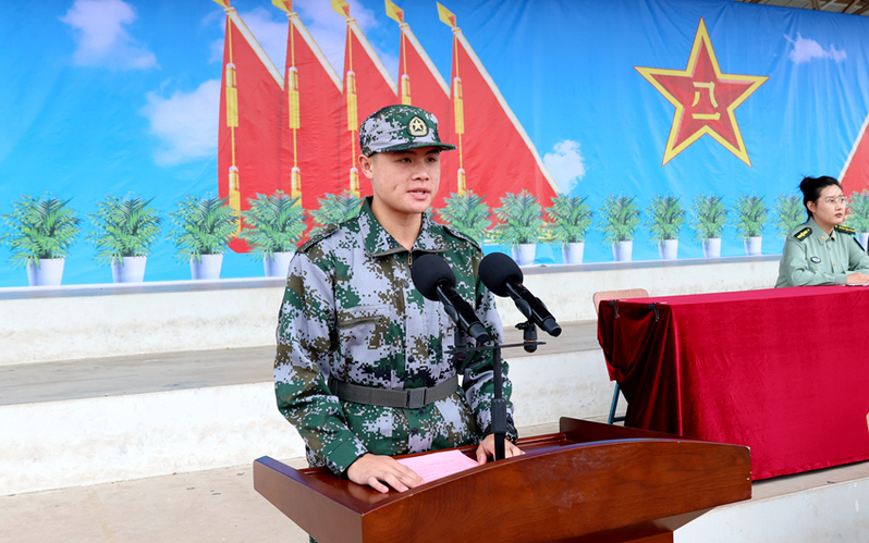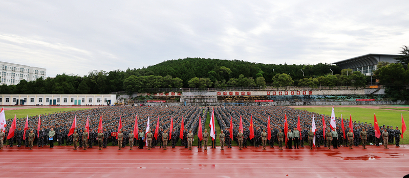 教官代表钱小龙在发言中表示,将恪尽职守、科学组训,坚持按纲施训、安全组训、文明带兵,以高度的责任感和使命感全力保障军训任务圆满完成。随训辅导员代表、建筑与安全工程系韩秀霞老师表示,将全程陪伴、积极配合,做好训练保障与思想引导,助力同学们以饱满热情投入军训。机电与材料工程系2025级肖赟熙同学代表全体参训新生郑重承诺,将端正态度、严守纪律、刻苦训练、团结互助,以优异的军训成绩向中国人民抗日战争暨世界反法西斯战争胜利80周年致敬。