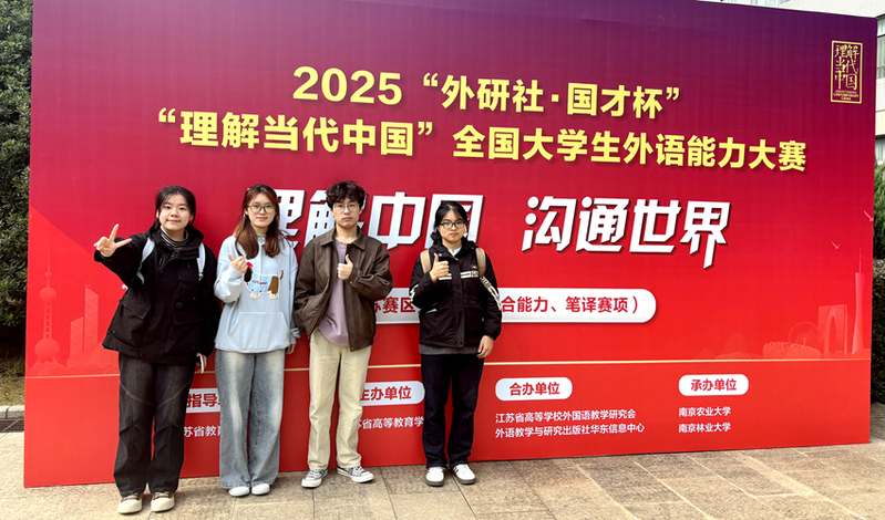 近日,2025“外研社·国才杯”“理解当代中国”全国大学生外语能力大赛笔译、演讲赛项江苏赛区英语组比赛落幕。经过激烈角逐,外语系英语22-2班周子沫和英语22-1班李思雨两名学子均获笔译赛项英语组二等奖,取得外语系自参赛以来笔译赛项最佳成绩;英语23-3班学子朱莹莹斩获演讲赛项英语组三等奖。