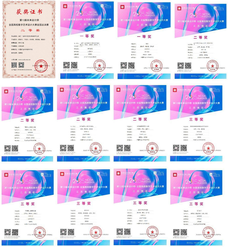 近日,2025年未来设计师·全国高校数字艺术设计大赛落下帷幕。本次大赛汇聚了来自全国1800多所高校的精彩创意,共征集到298853件设计作品。经过激烈角逐,徐海学院机电系工业设计专业12件学生作品脱颖而出,荣获全国二等奖1项,江苏赛区一等奖2项、二等奖4项、三等奖5项,机电系教师潘雅璇、张菀倩、郭昕鸣荣获优秀指导教师称号。
