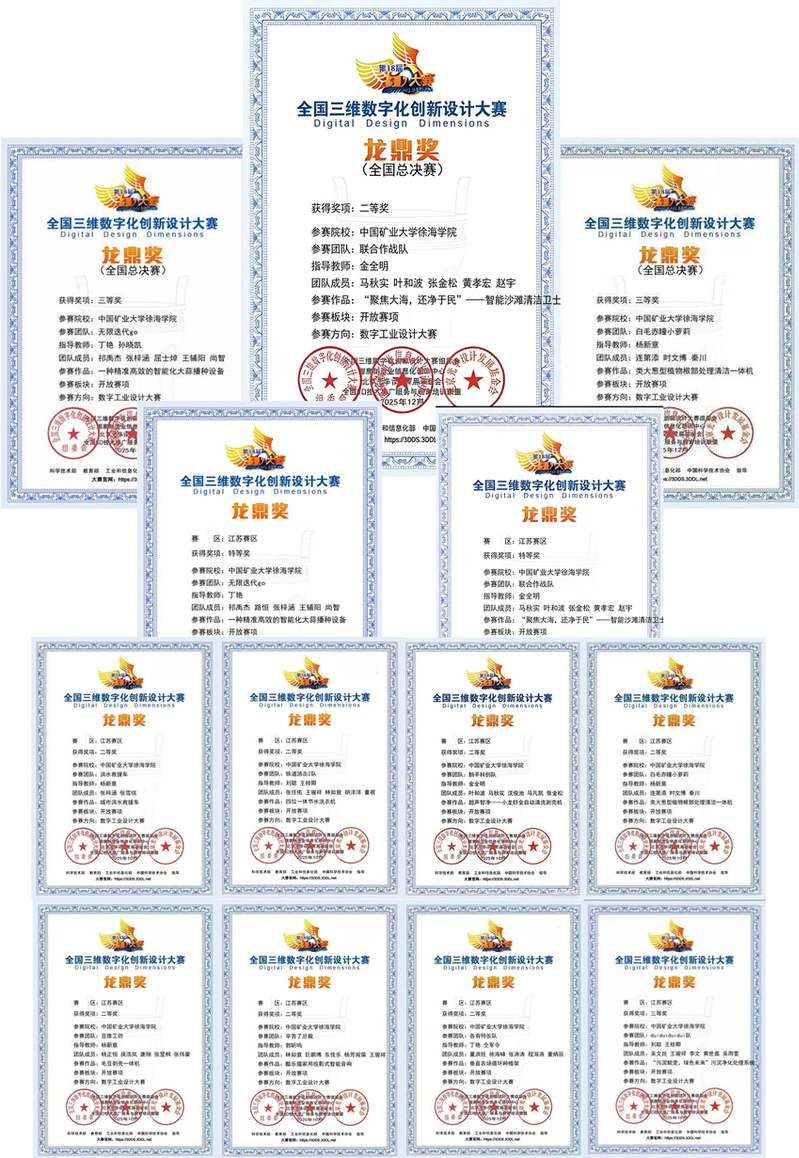 近日,第十八届全国三维数字化创新设计大赛圆满落幕。徐海学院机电系学生团队在赛事中表现优异,共有10支参赛队伍从全国800余所高校、1800余个院系、20000余支团队中脱颖而出,荣获全国二等奖1项、三等奖2项,江苏省级特等奖2项、二等奖7项、三等奖1项,充分彰显了徐海学子在三维数字化设计、工程实践与创新应用方面的综合实力。