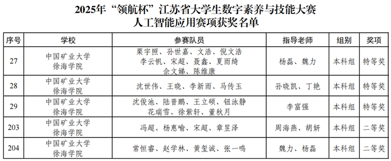 徐海学院在2025年“领航杯”江苏省大学生数字素养与技能大赛中取得佳绩